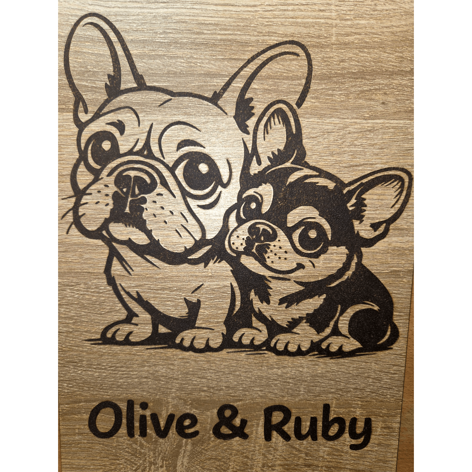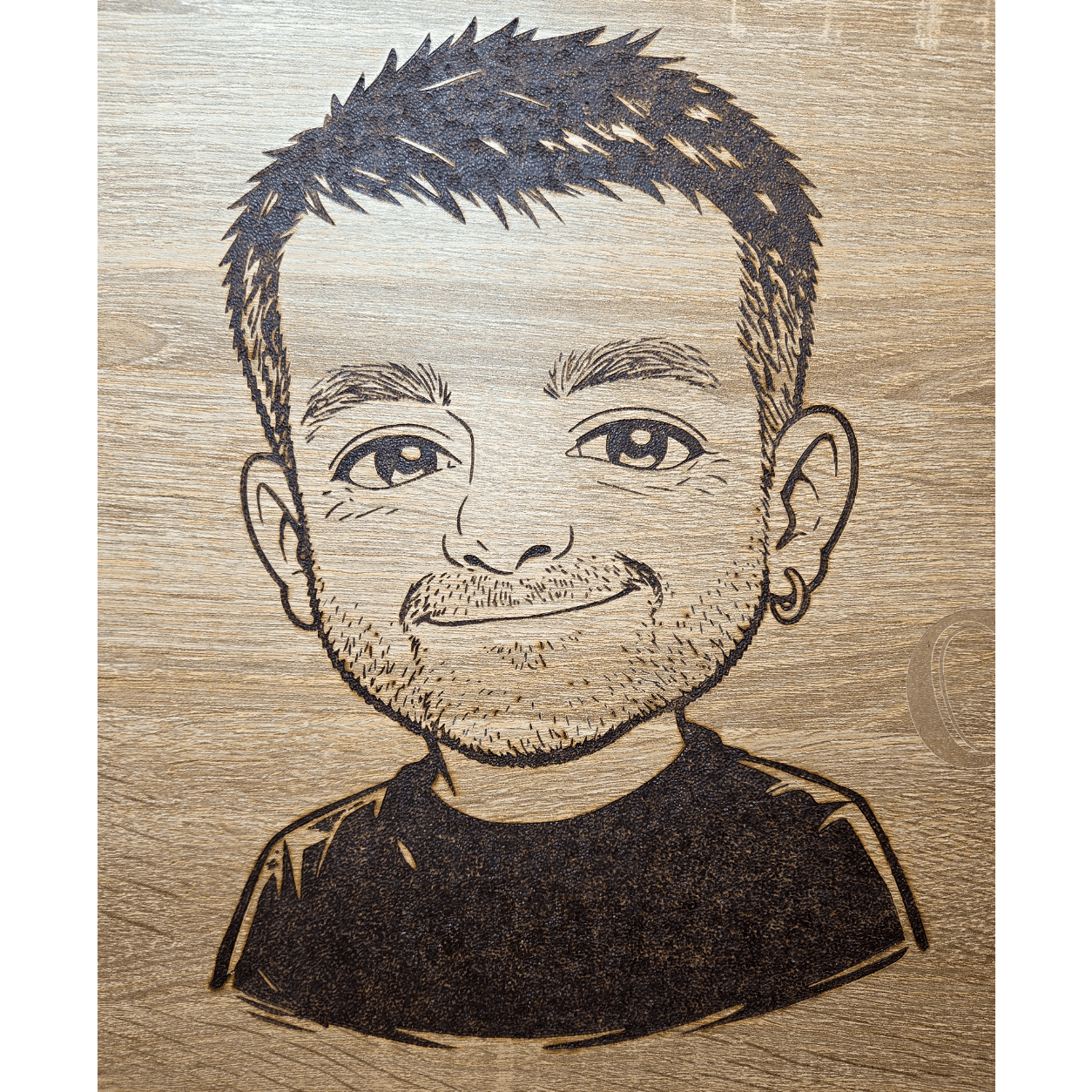 Turn your photo into a personalised caricature pyrography artwork hand-burnt onto oak-effect wood. Each custom wood-burned caricature is made to order for people and pets, with free name and date personalisation—just upload your photo using our simple form to get started.